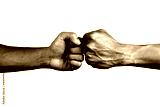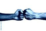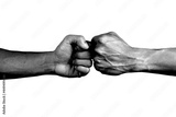 Hand giving fist bump.Teamwork in business for trust with partner.Black and white image on white background with clipping path.