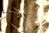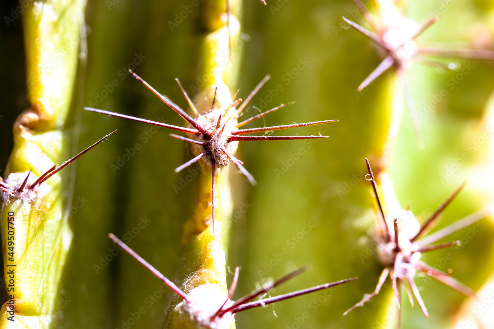 Cactus texture, background. Sharp long prickly spikes on dangerous desert plant.