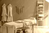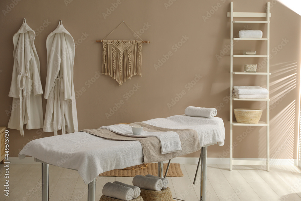 Stylish spa salon interior with massage table