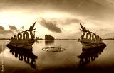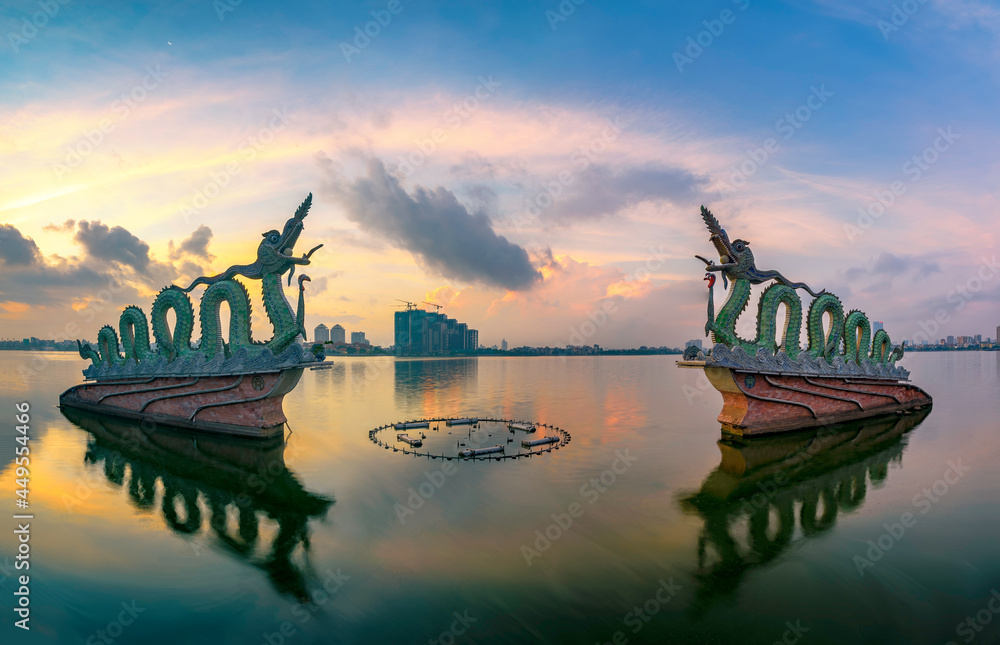 Statue dragon made of porcelain and stone in the West Lake of Hanoi