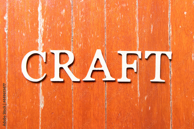 Alphabet letter in word craft on old red color wood plate background