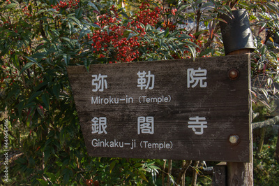 道案内の看板 京都 銀閣寺 弥勒院