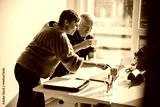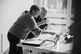 Colleagues working together on a project in the office
