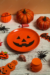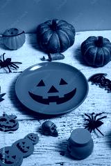 horror spooky funny ghost in halloween on holiday season greeting night celebration party with toy prop decoration and trick or treat autumn october festival and jack-o-lantern concept