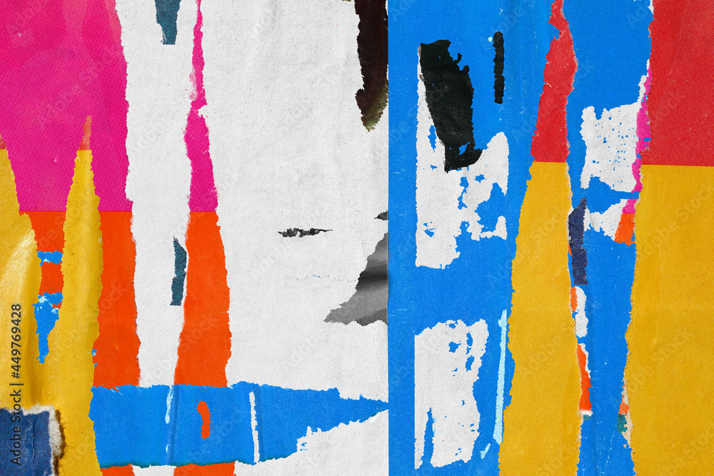 Colorful ripped torn grunge posters background creased crumpled paper backdrop placard surface