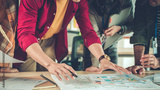 Group of young asian creative business brain storm meeting presentation,discussing roadmap to product launch, planning,strategy,new business development,working with new startup project in office.
