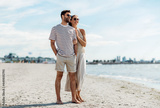 summer holidays and people concept - happy couple on beach in tallinn, estonia