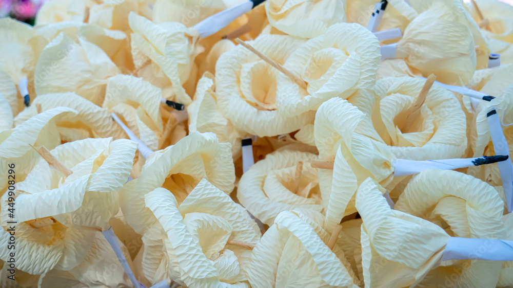 Sandalwood flowers are made from sap or corn husks. Used in funeral ceremonies in Buddhist traditions in Thailand. Artificial flowers for funeral use. most Thai people.