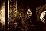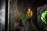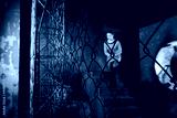 Woman in retro style sci-Fi movie shoots out laser weapons..