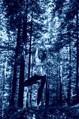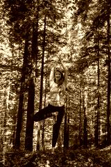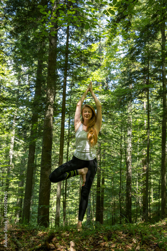 Woman practicing yoga in the forest