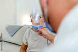 Male young doctor making a nasal swab test to a senior grey haired woman for corona virus (covid-19) pandemic disease. Shot of a doctor using cotton swab while doing coronavirus PCR test.