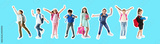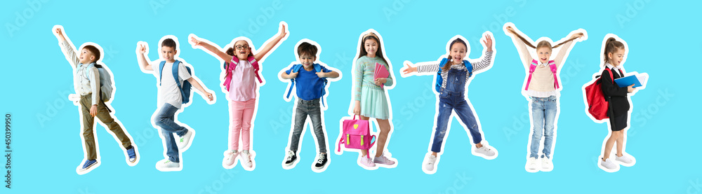 Jumping little girl on color background