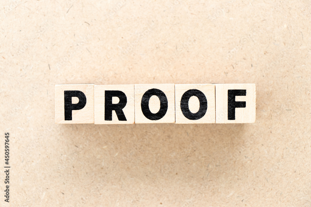 Alphabet letter block in word proof on wood background
