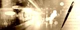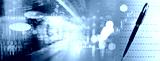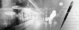 elegant black pen with golden coin money stack and index number and graph of stock market business abstract background