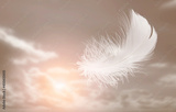 Lightly White Feather Floating in The Sky. Abstract Feather Flying in Heavenly.