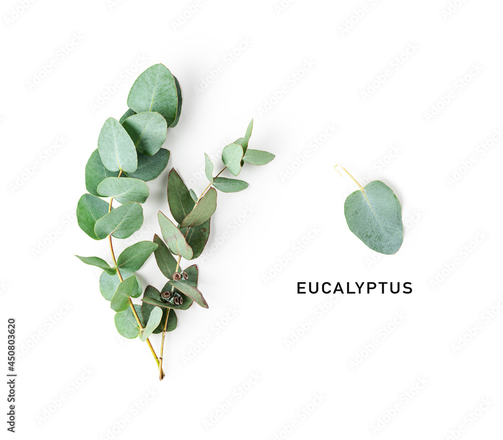 Eucalyptus branch and leaves creative layout.