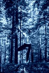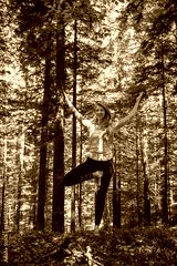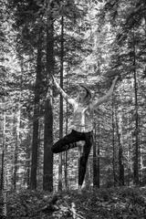 Woman practicing yoga in the forest
