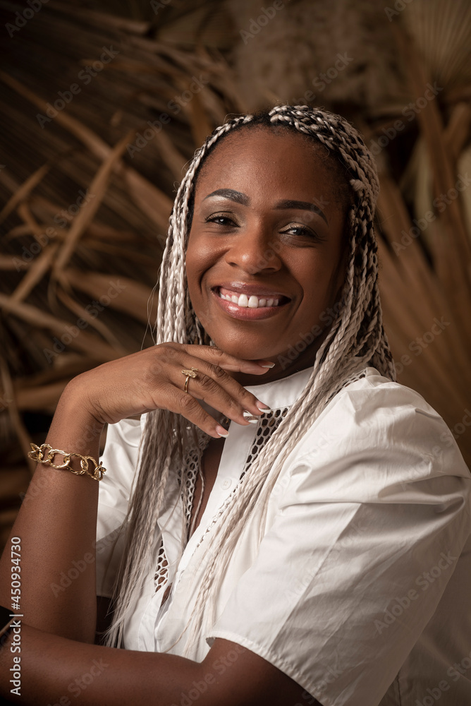 Hermosa mujer de raza afro caribeña muy sonriente