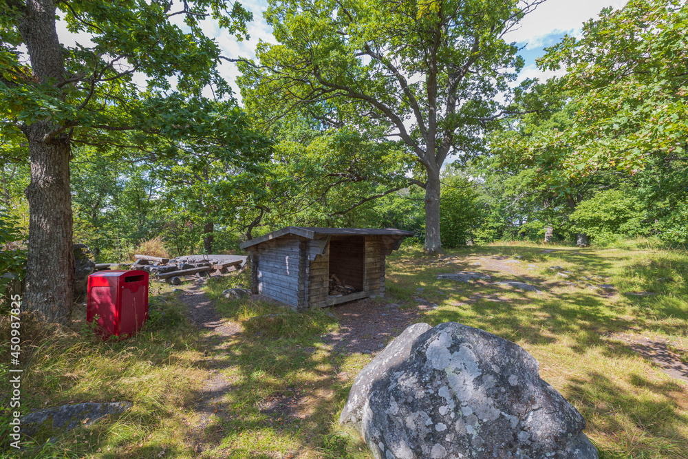 Beautiful summer nature landscape view. Outdoor resting place for tourists. Sweden.