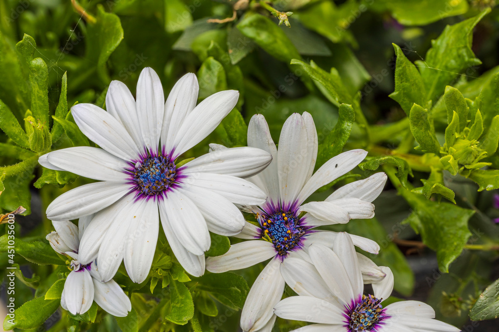 Close up view of white daisy flower on green background. Beautiful nature backgrounds. Sweden.