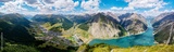 Livigno, Italy, panoramic aerial view of the lake and valley
