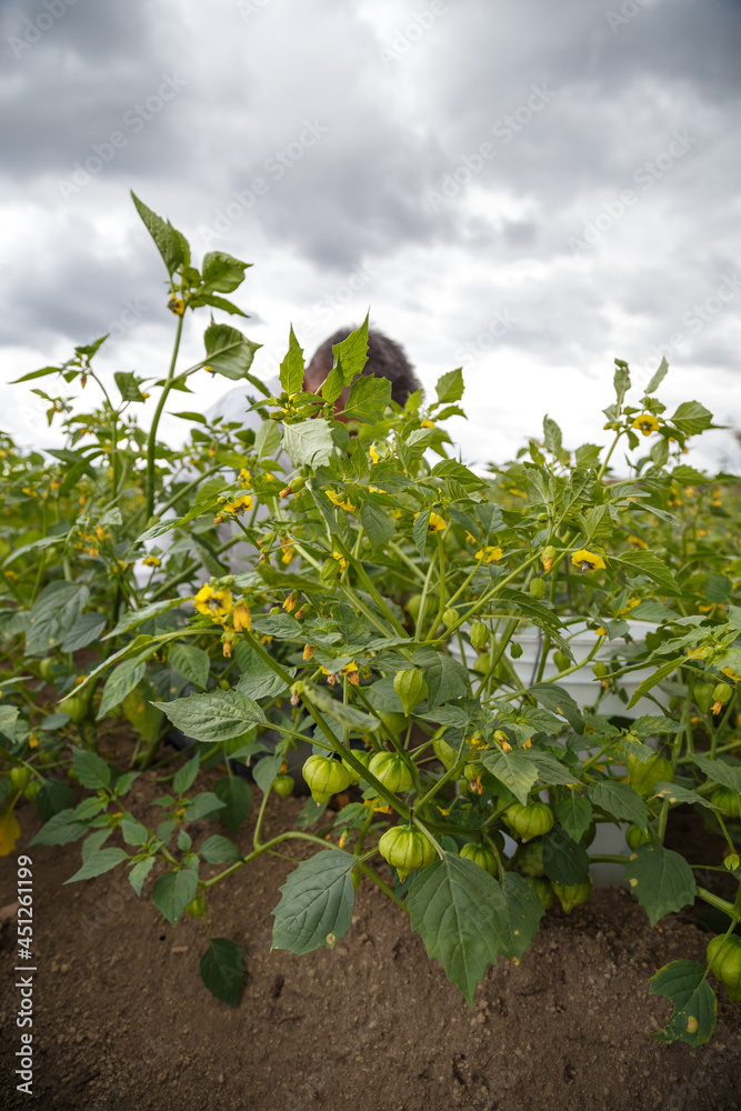 organic tomatillo fresh vegetables in the field