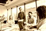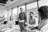 Male caucasian executive ceo businessman leader with diverse partners team, managers group at meeting. Multicultural professional businesspeople working together on business sales plan in boardroom.