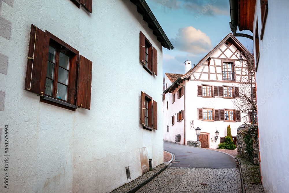 Attractive cozy European houses in Bavarian style. Location place Vaduz town, Liechtenstein kingdom.
