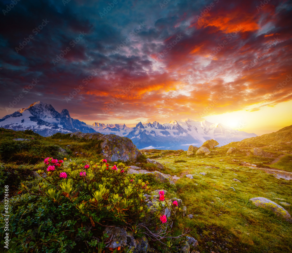 Wonderful view of the mighty Mont Blanc glacier. Location Chamonix resort, France, Europe.