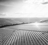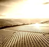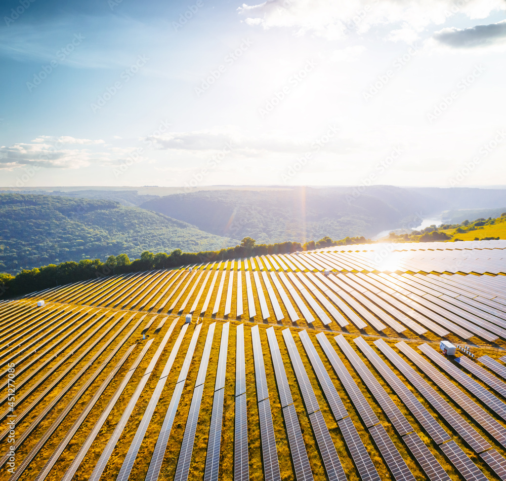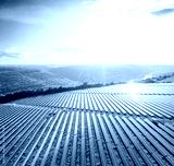 Top view on photovoltaic solar power panels. Alternative electricity source.