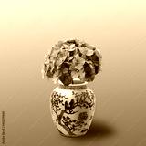Hydrangea macrophylla Hortensia - purple flower in an old chinese vase