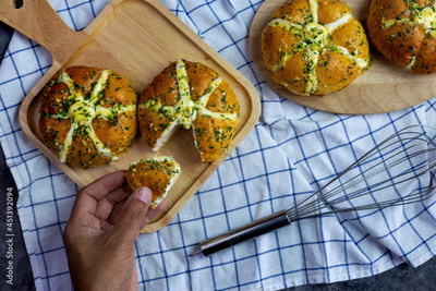 Korean cream cheese bread stuffed with cream and garlic