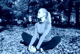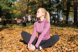 Young woman is doing sports outside in a autumn park