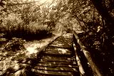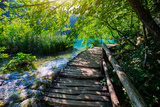 Touristic wooden pathway for nature trekking in Plitvice Lakes National Park, Croatia.