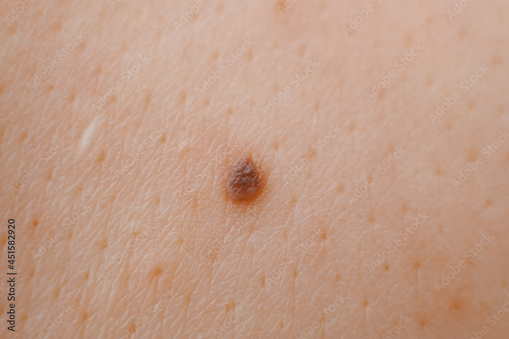 Close up of mole and human skin texture.
