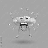 Modern design, contemporary art collage. Inspiration, idea, trendy urban magazine style. Big cloud with mouth, eyes and hands and legs on colored background