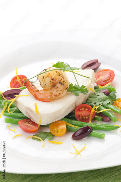 Poached Halibut and Spicy Shrimp