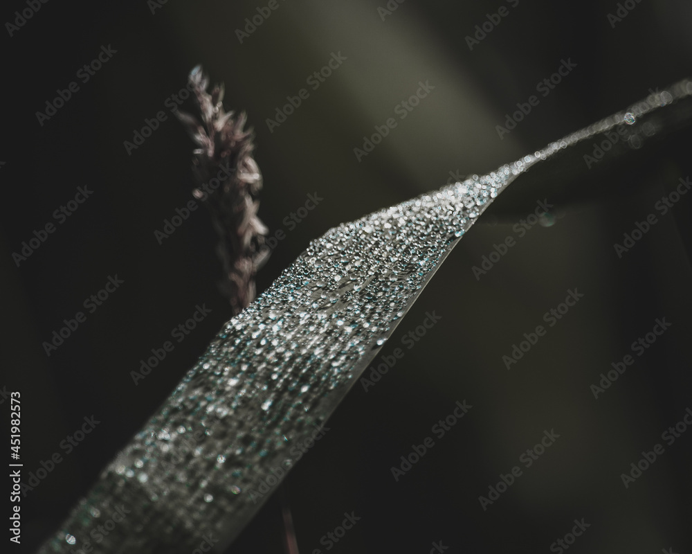 Dark and saturated grass with water droplets