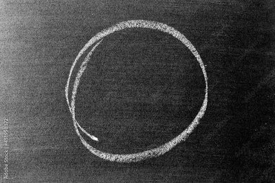White chalk hand drawing as circle shape on blackboard or chalkboard background with copy space
