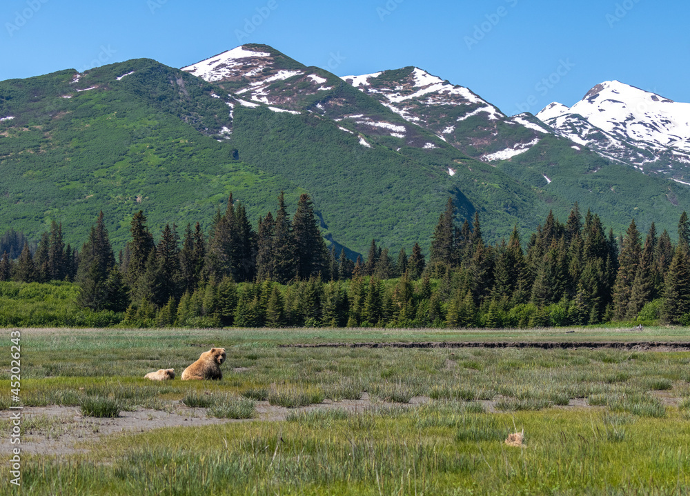 Alaska brown bear, grizzly bear or coastal brown bear in Lake Clark National Park and Preserve, Alaska in the wilderness