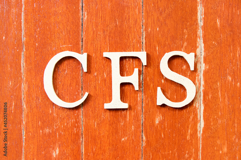 Alphabet letter in word CFS (Abbreviation of Container Freight Station, Certified fund specialist or Chronic fatigue syndrome) on old red color wood plate background