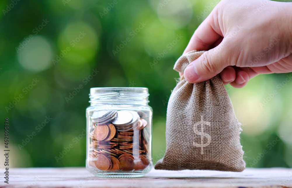 Coins on table background and saving money and business growth concept, finance and investment concept, invest it to make it grow even more, Growth money of profitability of professional investment