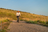 senior male cyclist is riding a touring bike on a gravel trail at Colorado foothills, summer scenery