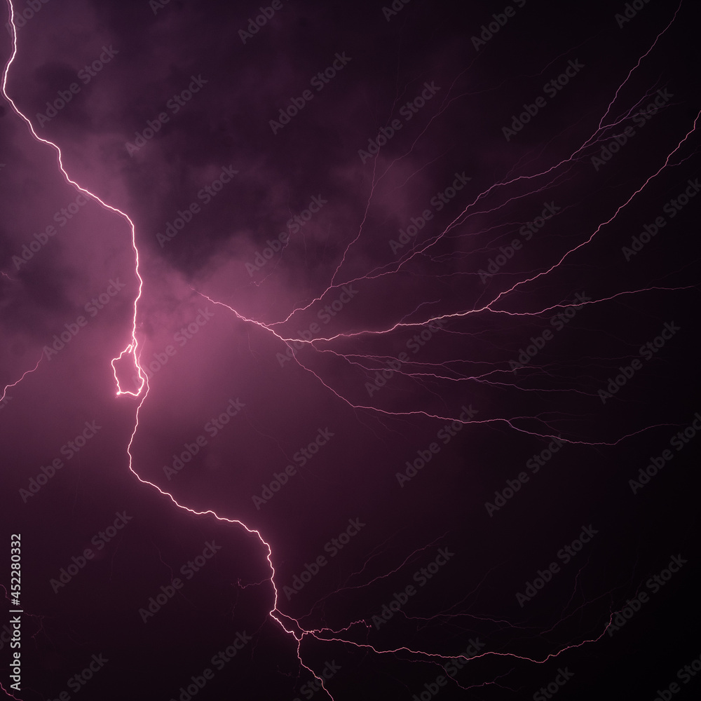 powerful lightning strike over the night sky