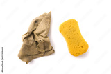 sponge and deerskin for car cleaning. isolated on white