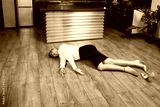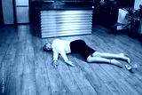 Crime scene with strangled business woman (imitation)..