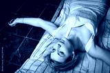 Strangled beautiful woman in a bedroom. Simulation of the crime scene.........