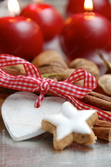Weihnachten - Weihnachtskarte - Holzherz und Adventskerzen - rote Kerzen