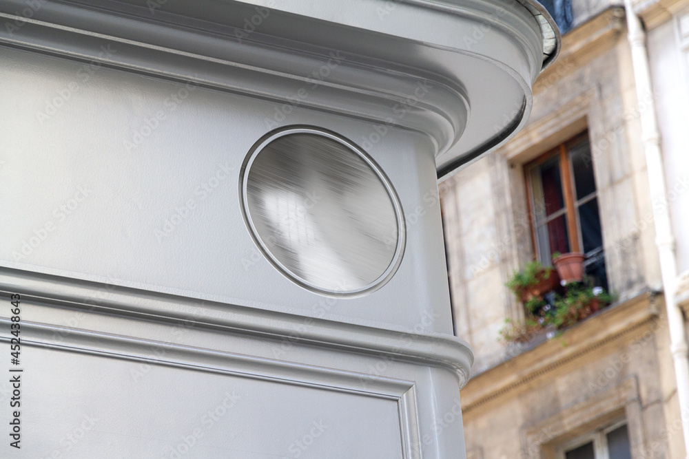 Storefront on a shop corner Mockup. Empty store brand signboard frame in street