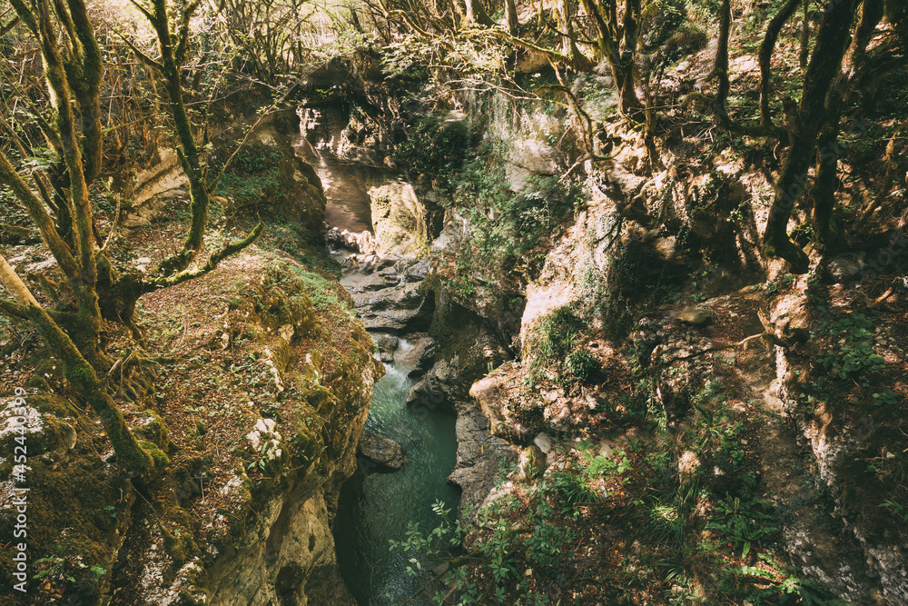 Martvili Canyon, Georgia. Landscape Abasha River. Natural Monument Is Located In The Village Inchkhuri